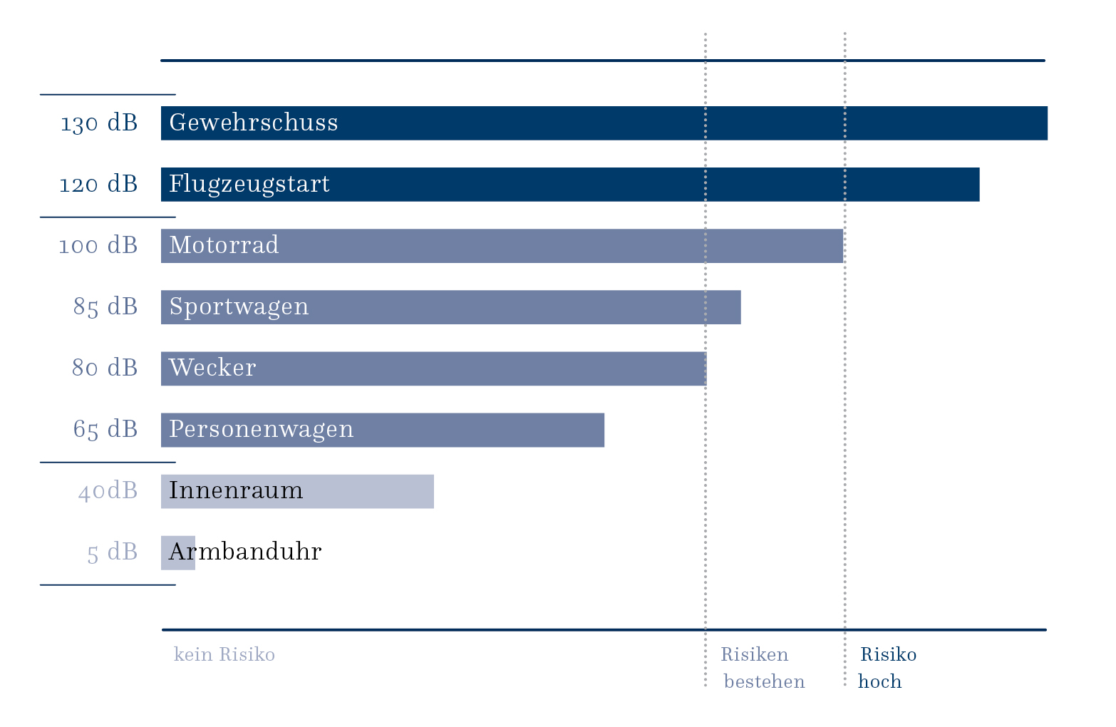 Hohe Geräuschpegel können temporäre oder permanente Gehörschäden verursachen. Ein Gehörschutz ist unerlässlich, wenn man längere Zeit hohem Lärm ausgesetzt ist.